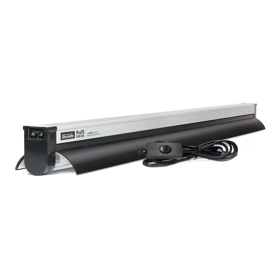 De Arcadia Pro T5 UVB Kit – 12% Desert UVB lamp is een HO (high output) TL-lamp met armatuur en ingebouwde VSA en reflector, met een essentiële verhouding tussen daglicht (7000 Kelvin) en voor het menselijk oog onzichtbaar ultraviolette straling. De aanwezige UV straling hebben reptielen en amfibieën nodig om gezond te blijven. De hoeveelheid aan UV straling is afhankelijk van het soort dier en hun natuurlijke leefomgeving. Omdat TL-lampen nauwelijks warmte afgeven, is het noodzakelijk om deze lamp te combineren met een warmtelamp of warmtespot, voor het creëren van een zonneplaats.