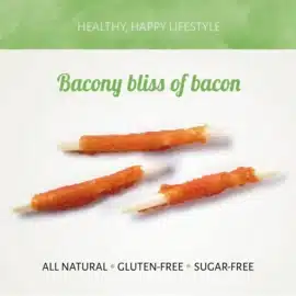 Zalige kip is gewikkeld rond een stevige bacon-stick. Je hond zal dol zijn op de smaak van Chicken D’light Bacon. Op deze traktaties, licht verteerbaar en met weinig vet, kan je hond lekker kluiven!
