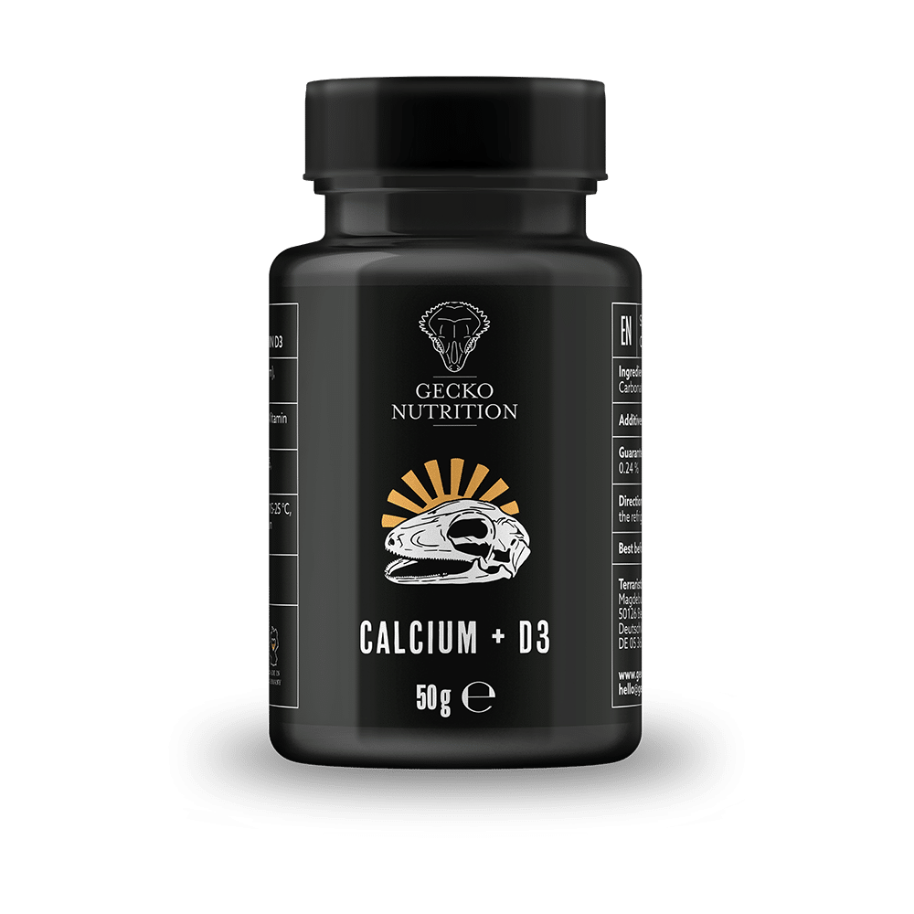 Calcium + D3 is een zeer effectief calciumpreparaat verrijkt met vitamine D3 voor de preventie en compensatie van calcium te kort en de complicaties ervan (bijv. rachitis of misvormingen). Het ondersteunt de optimale structuur en het behoud van het skelet en bevordert een gezond calciummetabolisme bij alle reptielen.