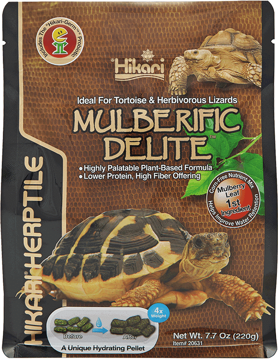 De Mulberific Delite™ korrel biedt een uitstekende waterabsorptie en een hoge vochtretentie wat problemen aan de urinewegen voorkomt. De natuurlijke wateropname tijdens het voeren, maakt deze voeding tot een ideale hydratatie-optie. Door de unieke samenstelling en textuur van de korrels kan het voedsel niet in de bek van de reptielen blijven kleven.