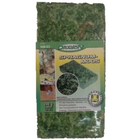 Sphagnum Moos es musgo prensado y seco que se puede usar después de mojar como complemento de una cubierta de suelo para crear habitaciones o lugares húmedos. Esto es importante para la mayoría de los reptiles y para promover la muda.