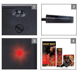 El termostato Exo Terra debe ajustarse de acuerdo con las necesidades de los animales. Investigue a fondo cuál es la zona de temperatura óptima deseada (POTR) para su reptil, de modo que pueda crear los gradientes de temperatura correctos dentro del terrario. Esto le dará a sus reptiles la capacidad de mantener su temperatura corporal.